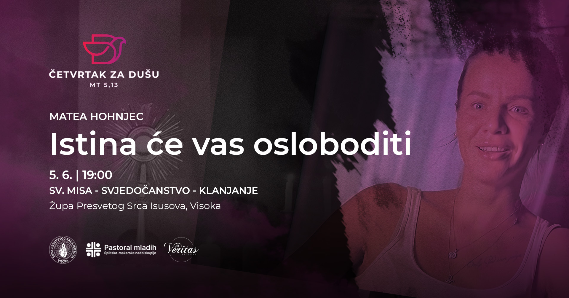 Pozivamo sve, osobito mlade, da se pridruže u četvrtak, 5. lipnja, u Visokoj. Dođite, poslušajte priču koja budi srce, pomolite se zajedno s nama i otkrijte slobodu koju daje samo istina.